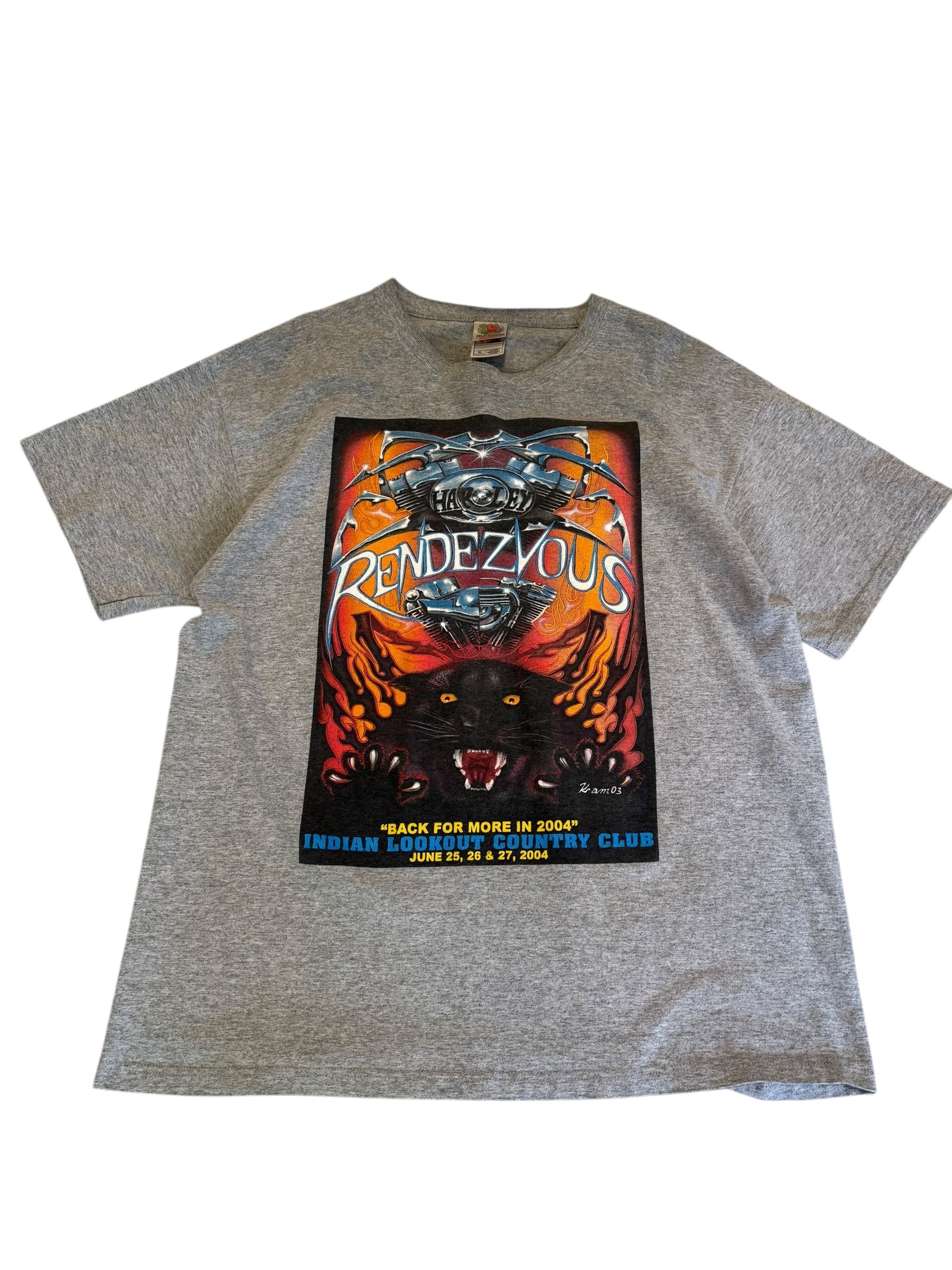 Shop › 2004 Harley Rendezvous Tee Image 1 of 3 Image 2 of 3 Image 3 of 3 2004 Harley Rendezvous Tee $40.00 Size XLMeasurements available upon request Purchase Added! Size XLMeasurements available upon request